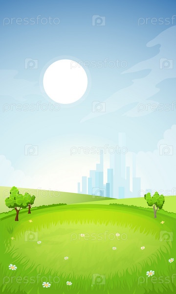 Сельский летний пейзаж с видом на город