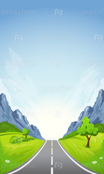Дорога автомобильная с горными пиками