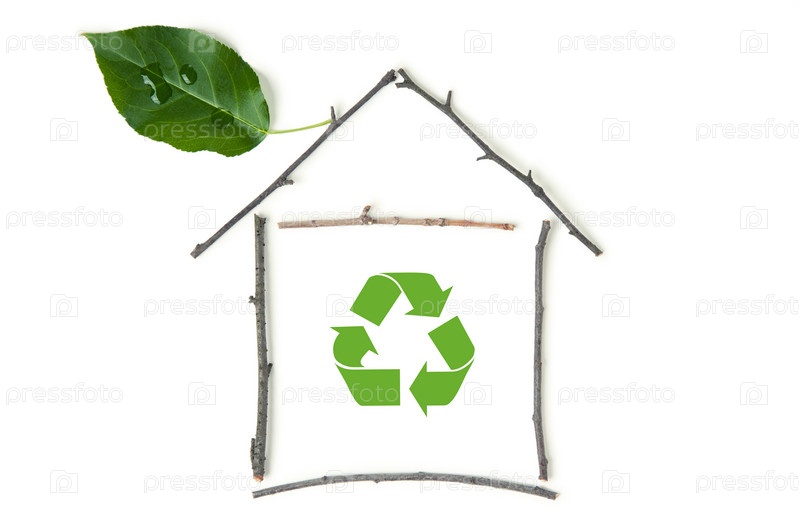 Экологический дом с символом повторной переработки в центре