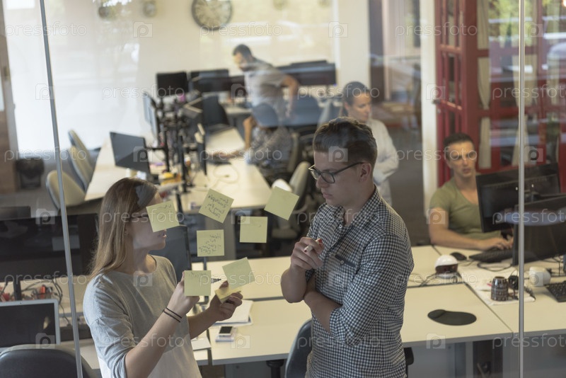 Молодая пара в современном офисе