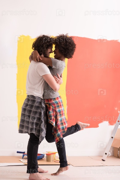 Счастливая молодая пара в новом доме