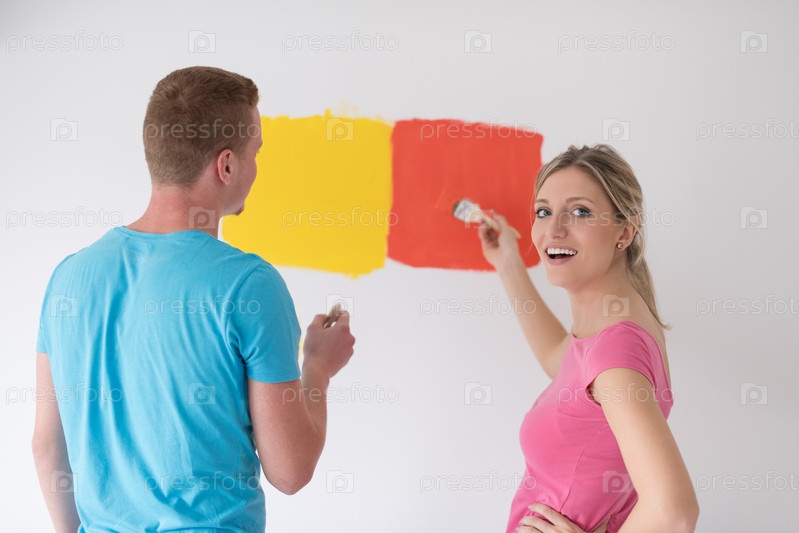 Счастливая молодая пара в новом доме
