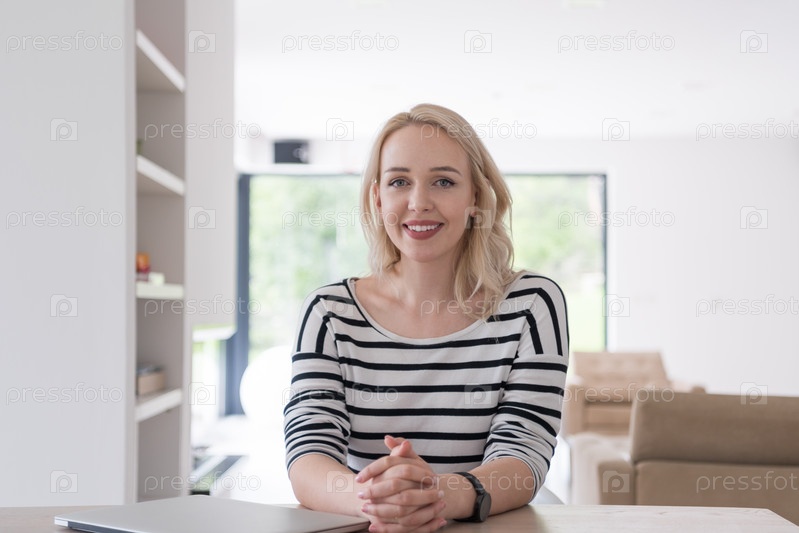 Молодая женщина с ноутбуком в домашних условиях