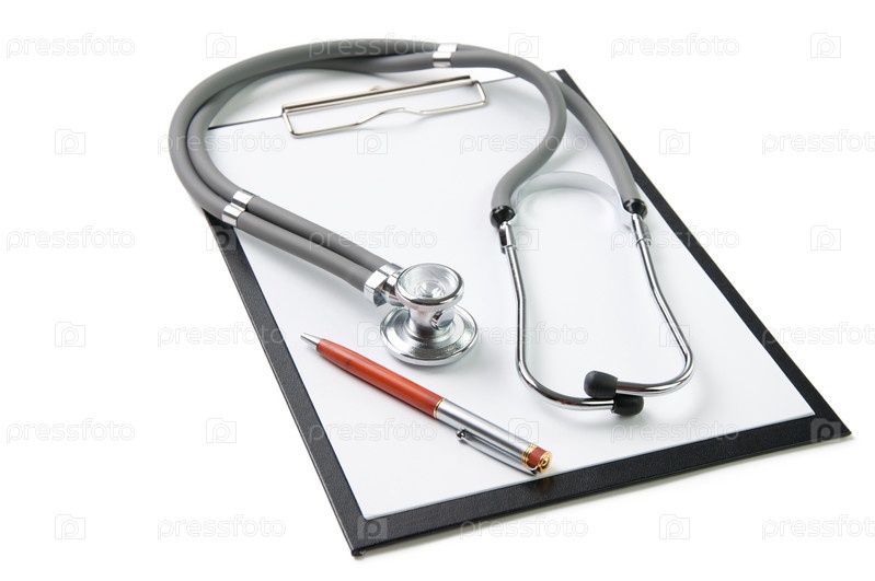 Стетоскоп, планшет и ручка, изолированные на белом фоне
