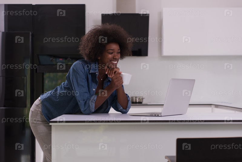Черная женщина в современной кухне