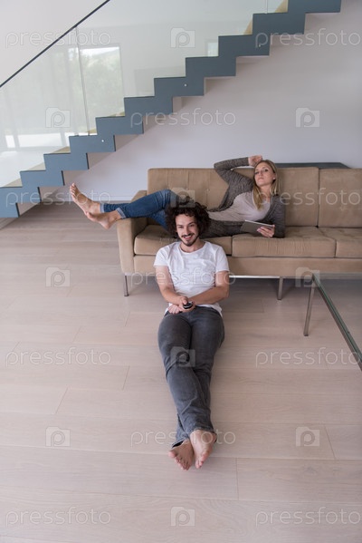 Молодая пара отдыхает в гостиной