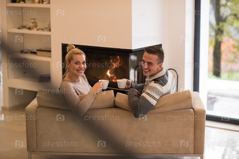 Молодая пара у камина