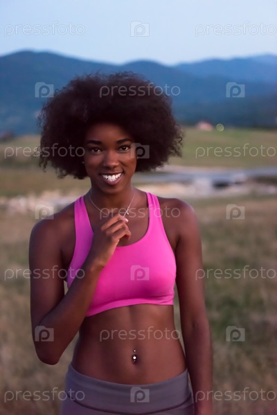 Молодая чернокожая женщина в природе