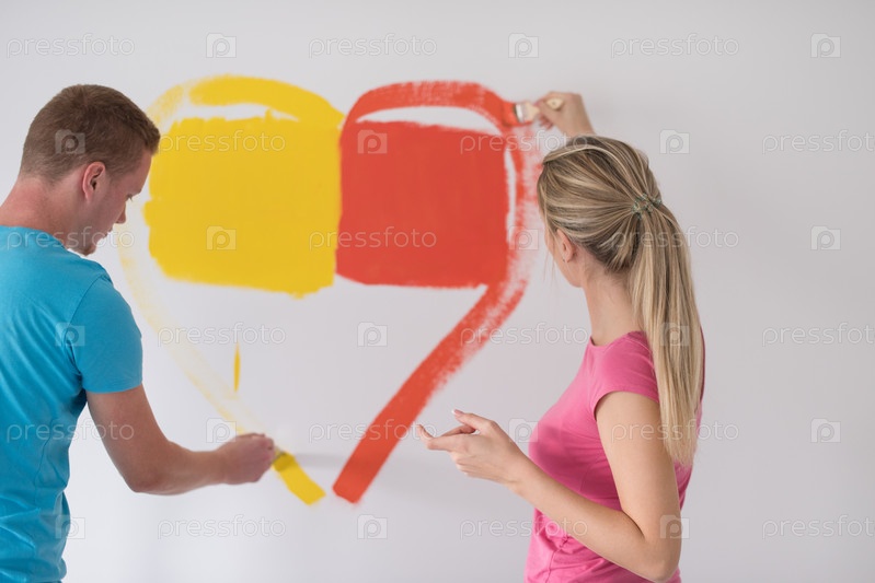 Пара рисует сердце на стене