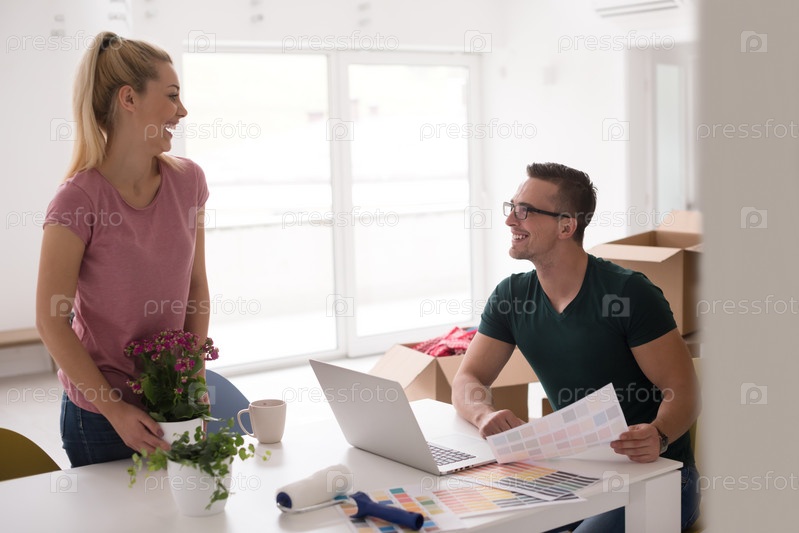 Молодая пара в новом доме