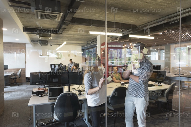Молодая пара в современном офисе