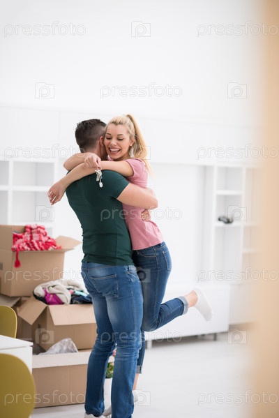 Счастливая молодая пара в новом доме