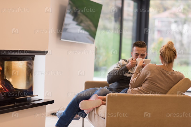 Молодая пара у камина