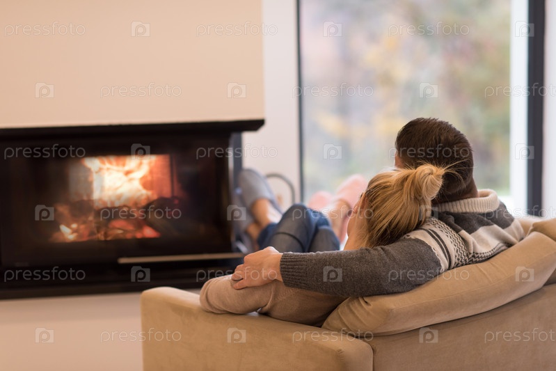 Молодая пара у камина