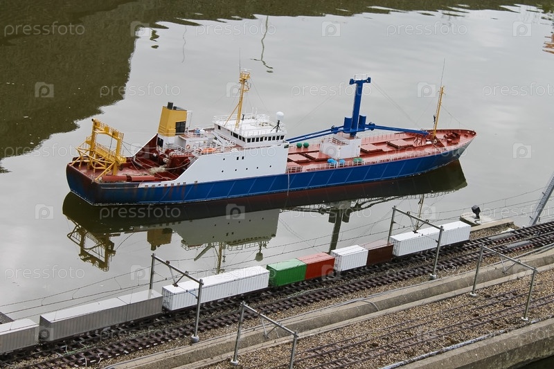 Миниатюрные корабль и железная дорога в парке Мадюродам, Гаага, Нидерланды