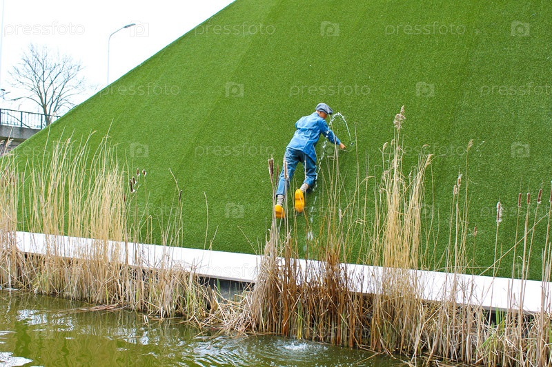 Манекен рабочего, устраняющего брешь, в парке Мадюродам, Гаага, Нидерланды