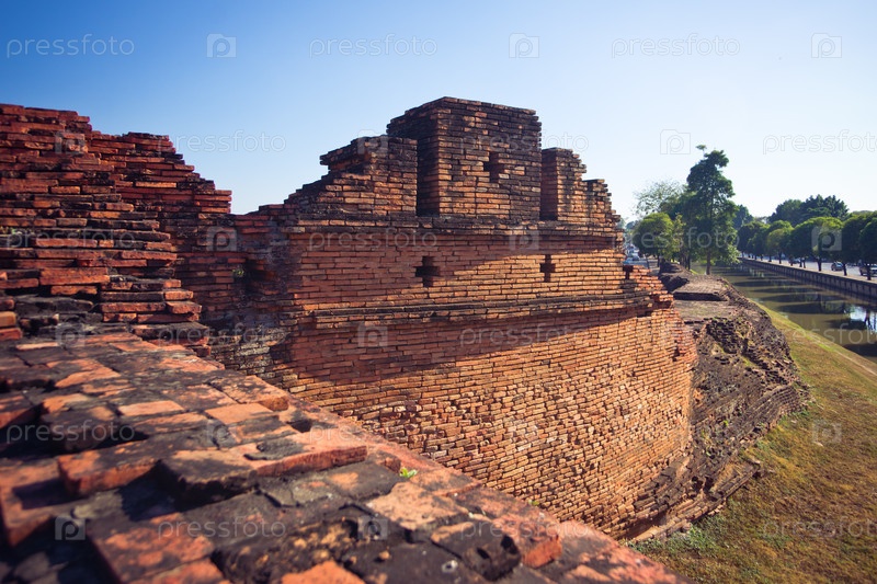 Древняя кирпичная стена в городе Чианг Май на севере Таиланда
