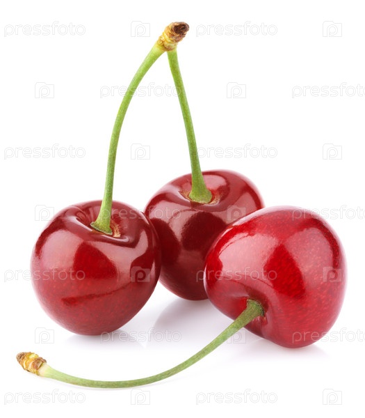 Три черешни, изолированные на белом фоне