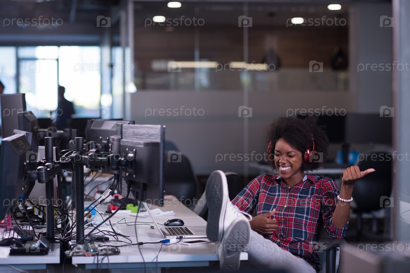 Счастливая девушка в офисе