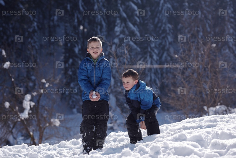 Дети играют зимой