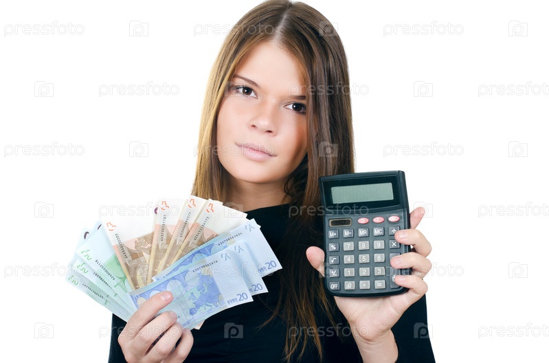 Красивая девушка с банкнотами евро изолирован на белом фоне