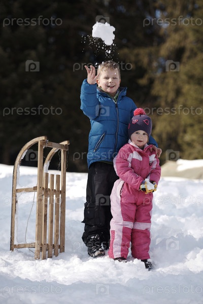 Дети играют зимой