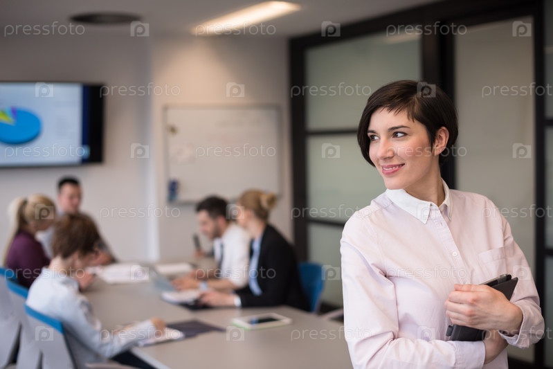 Предприниматель с планшетом в конференц-зале