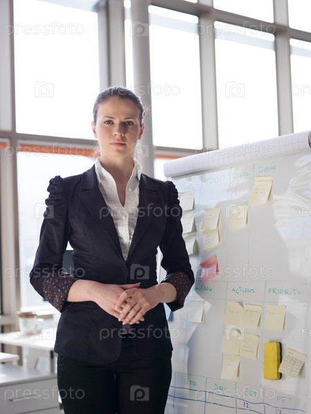 Портрет молодой деловой женщины в современном офисе