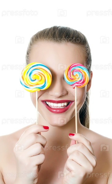 Девушка с леденцами, изолированная на белом