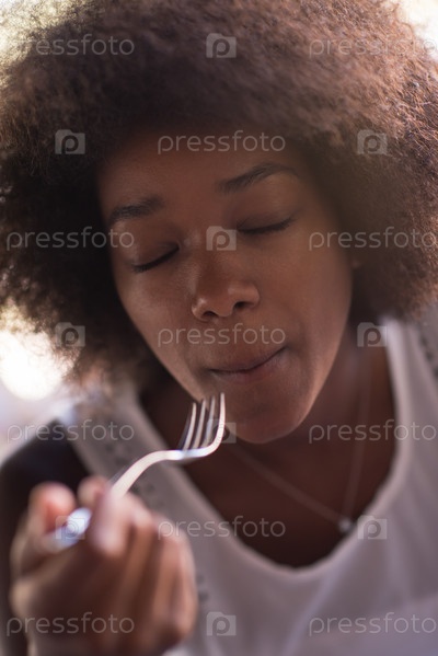 Женщина ест макароны