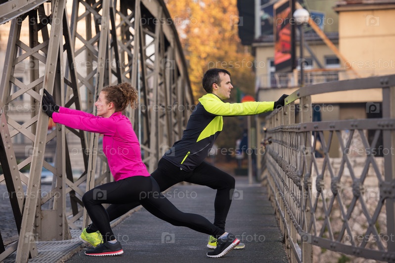 Пара разминается перед бегом