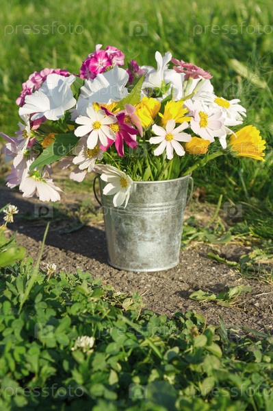 Букет цветов в ведре