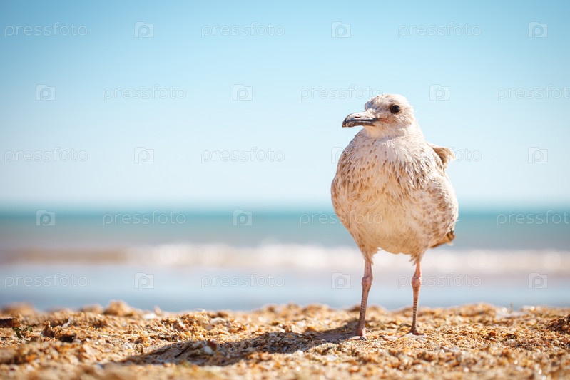 Чайка на песчаном берегу моря