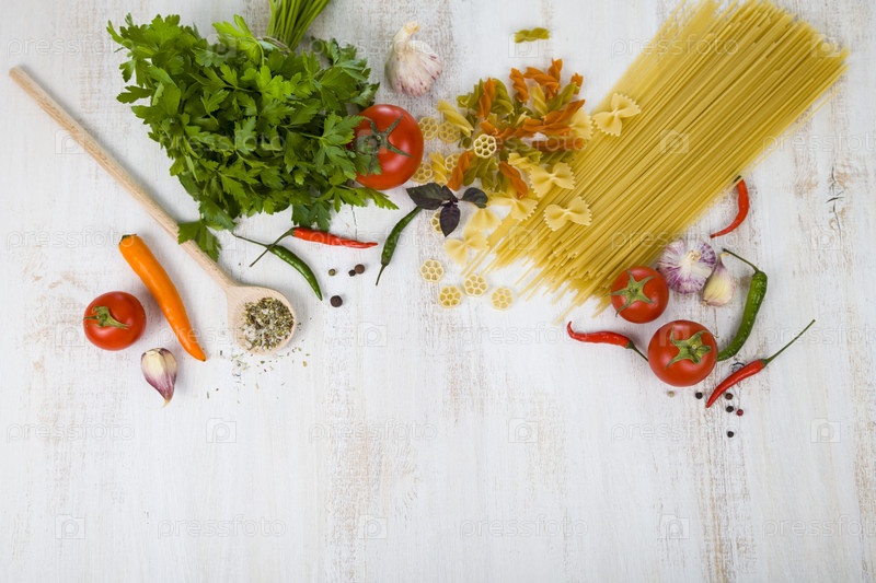 Сырые макаронные изделия и специи