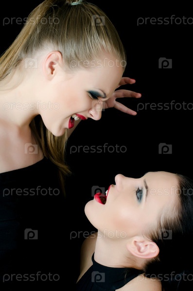 Две красивые девушки ссорятся и кричат