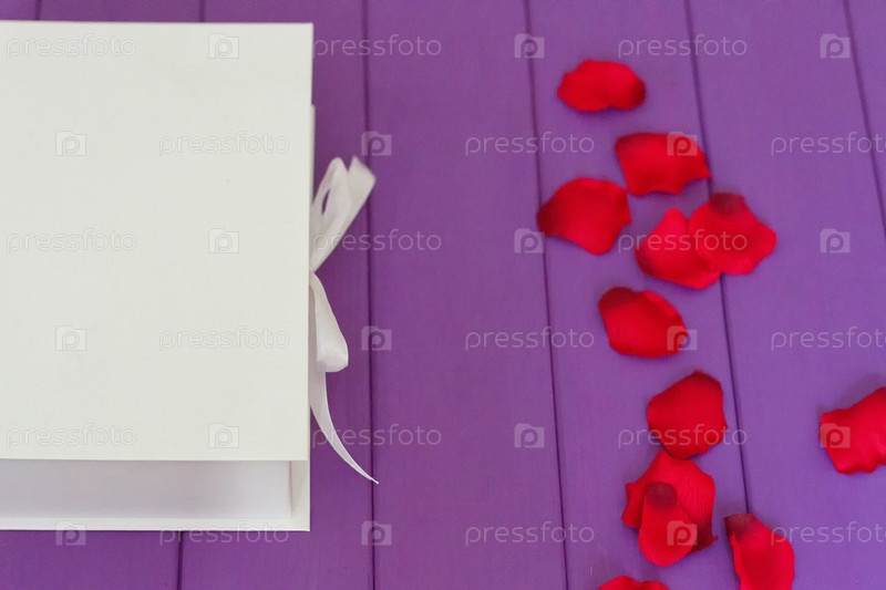 Лепестки розы и коробка подарка