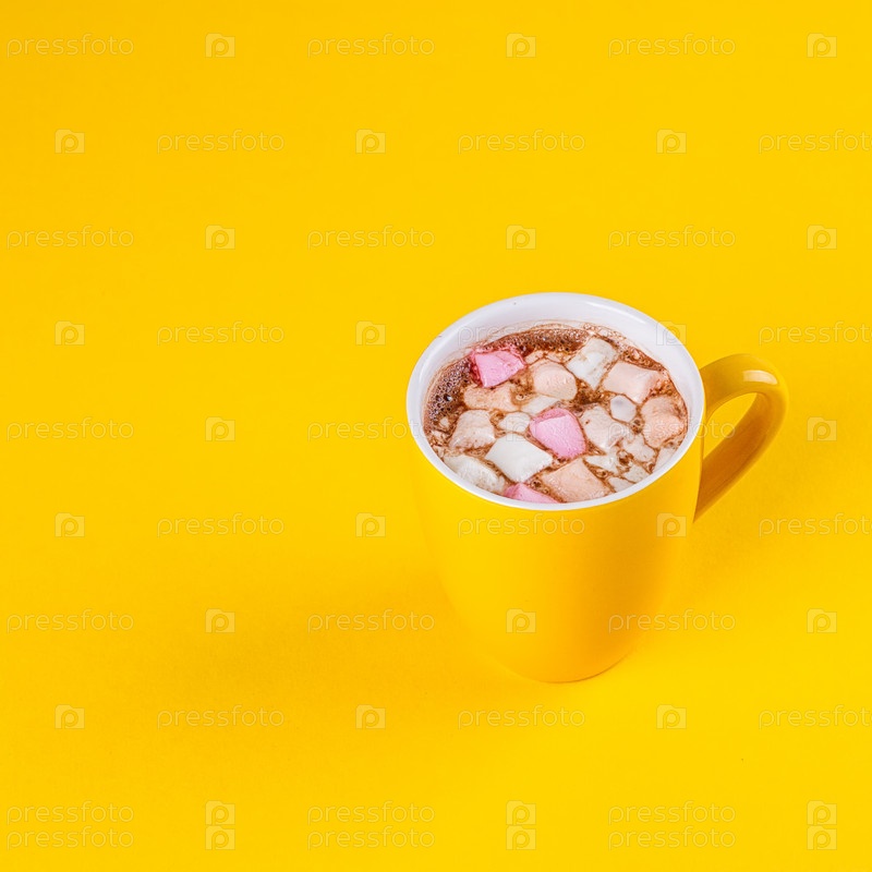 Желтая чашка горячего какао с зефиром