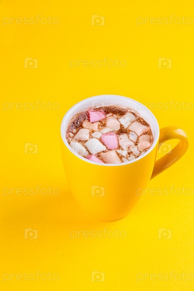 Желтая чашка горячего какао с зефиром
