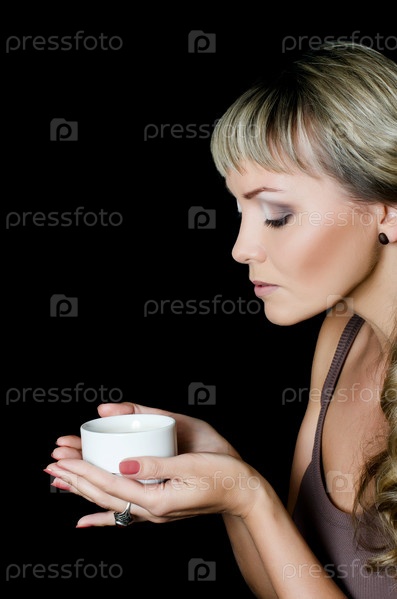 Прекрасная элегантная женщина с чашкой кофе