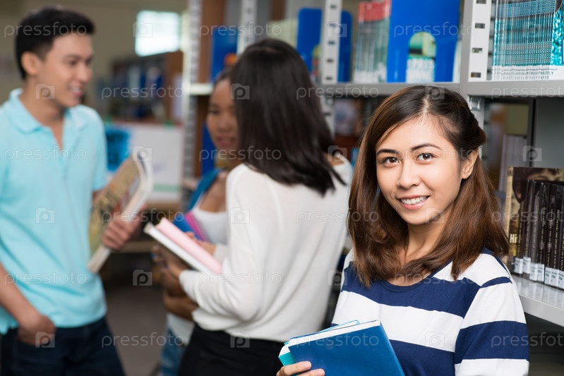 Школьница в библиотеке