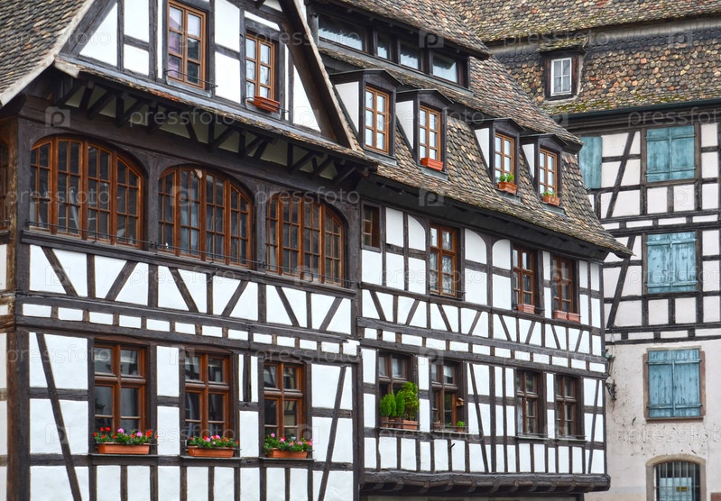 Узкая красочная улица в деревне под Страсбургом, Эльзас