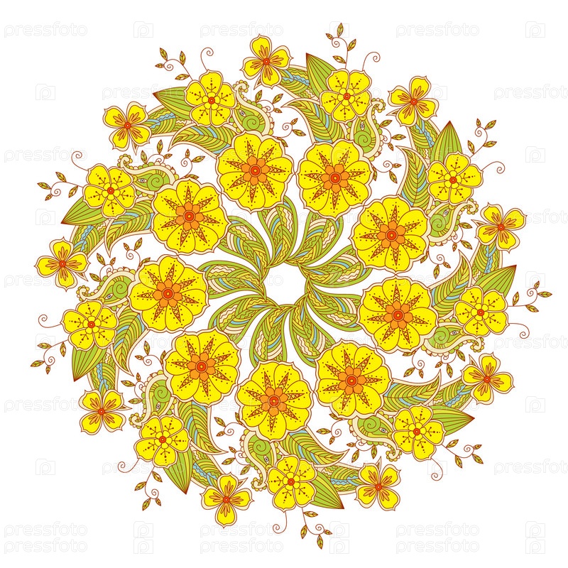 Красочная мандала с цветами и листьями