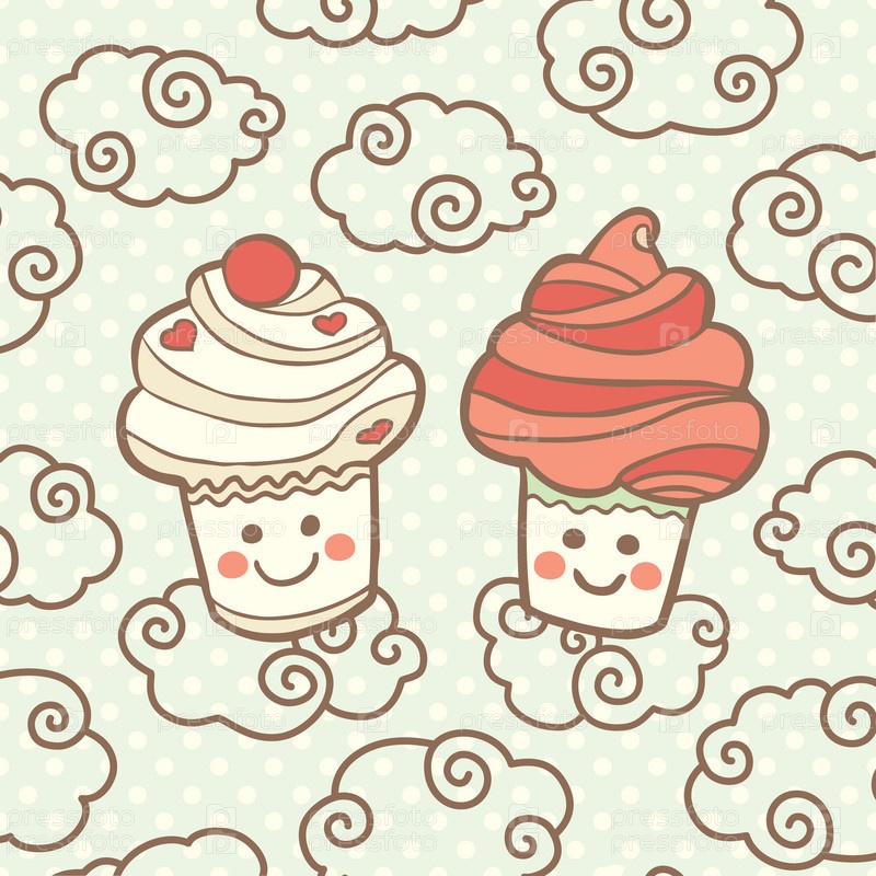 Милые улыбающиеся кексы на облака