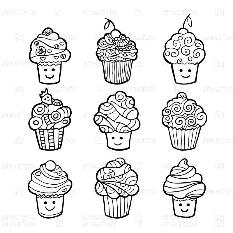 Набор черно-белых сладких кексов, изолированных на белом фоне