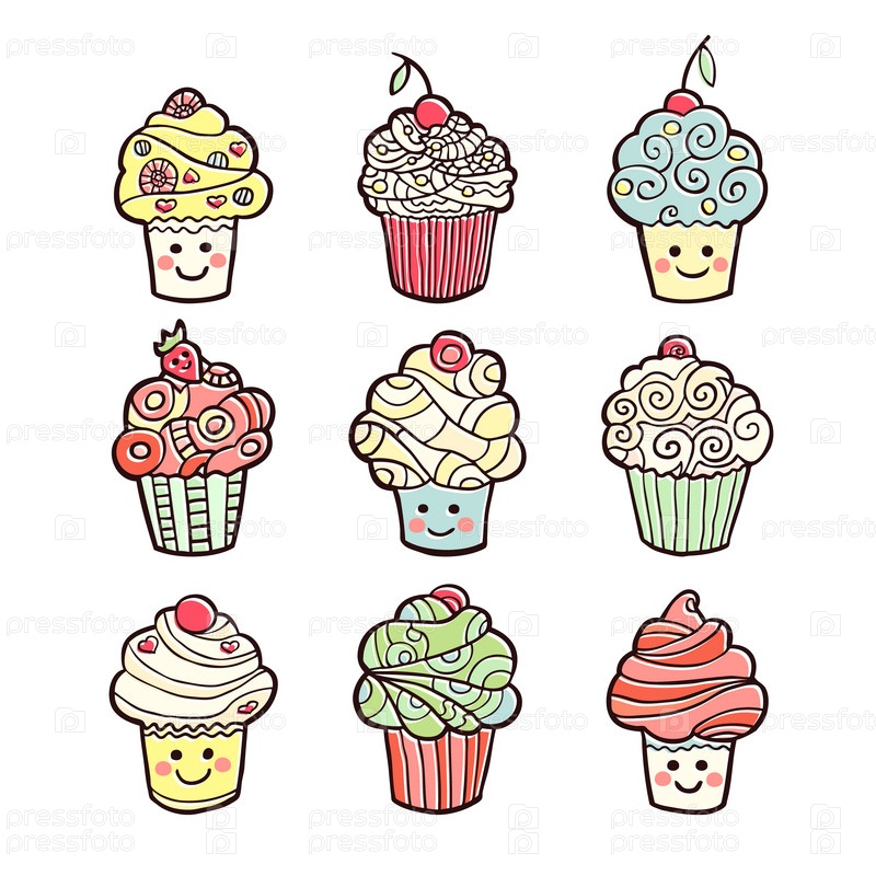 Набор красочных сладких кексов, изолированных на белом фоне