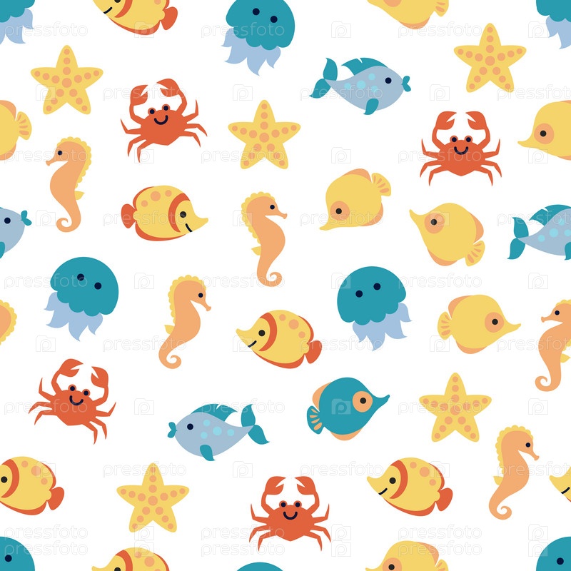 Бесшовный фон морских животных на белом фоне
