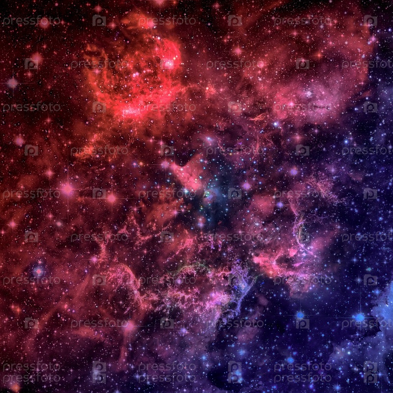 Красивая туманность, звезды и галактики