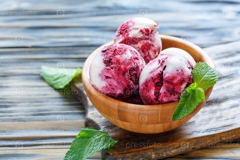 Вкусное ванильное мороженое с черной смородиной