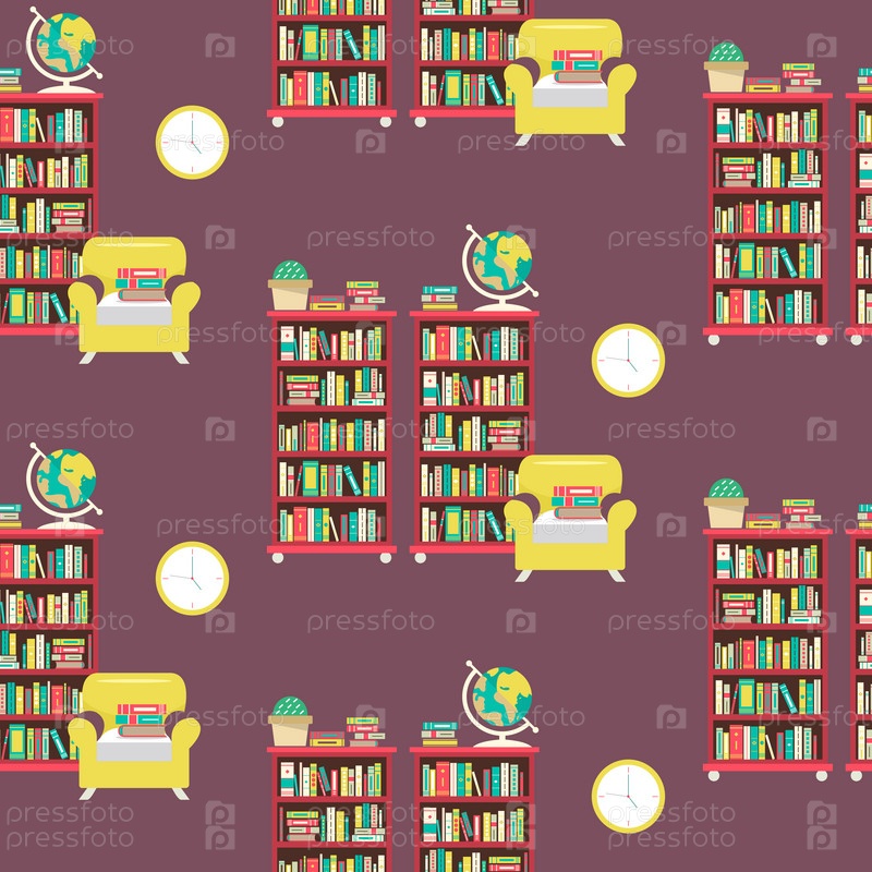 кресло и настенные часы на коричневом фоне. бесшовный повторяющийся шаблон.