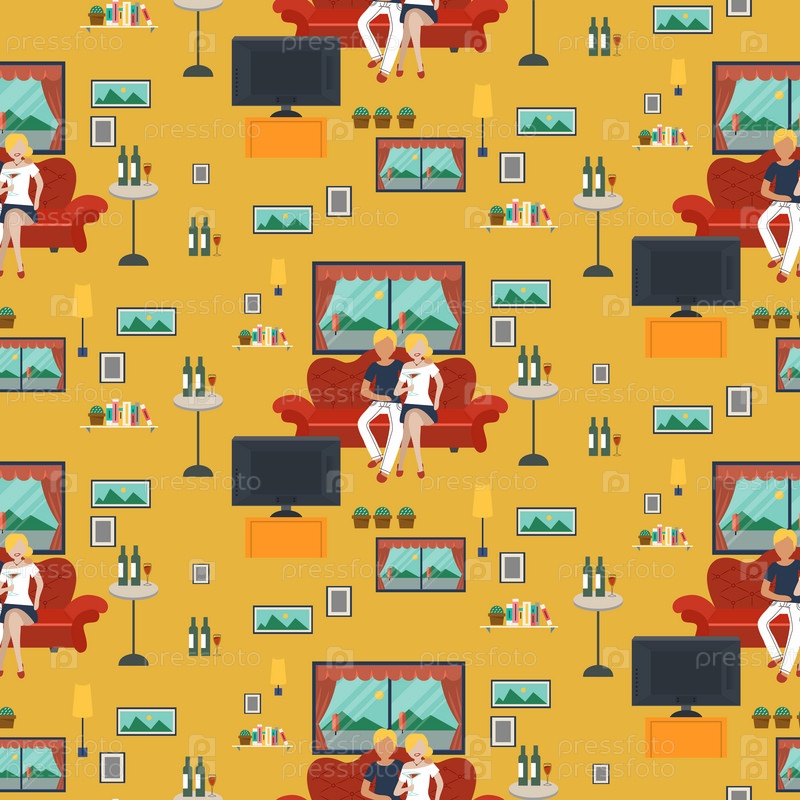 Пара смотрит телевизор в гостиной